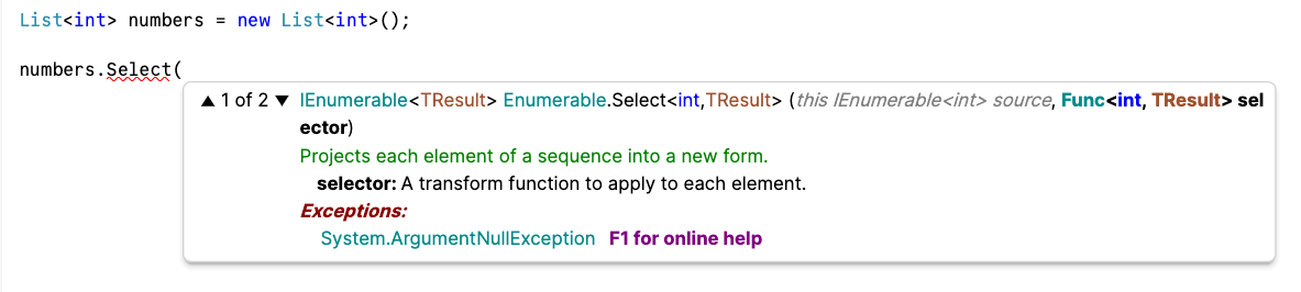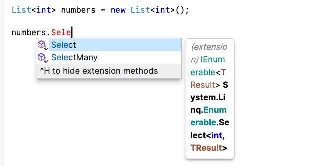 When linqpad shows IntelliSense, I see this small window, it is not big enough and does not show the information clearly, and does not show the normal info I get in VS or Rider.