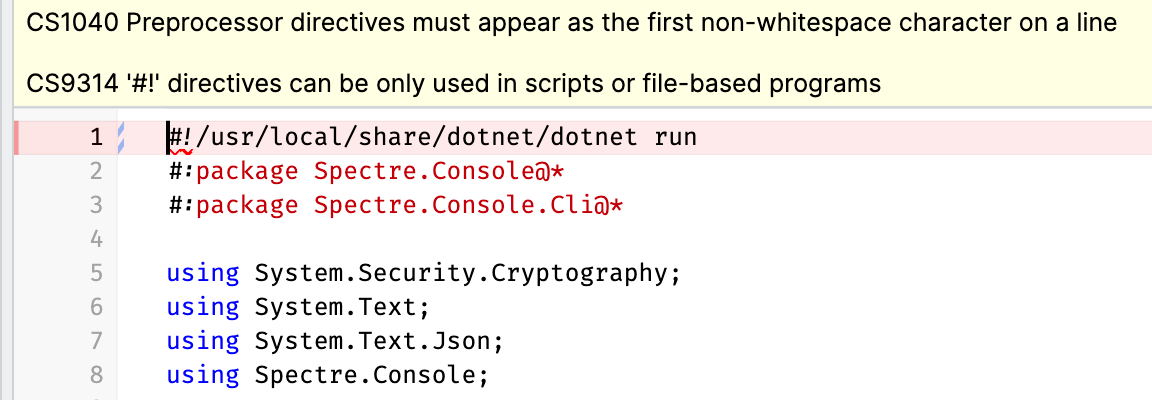 At the moment LINQPad report error for shebang line in file-based app. Could you please ignore it?