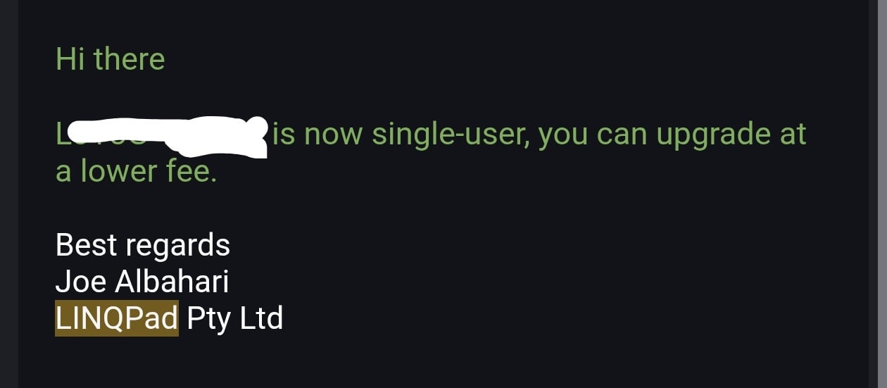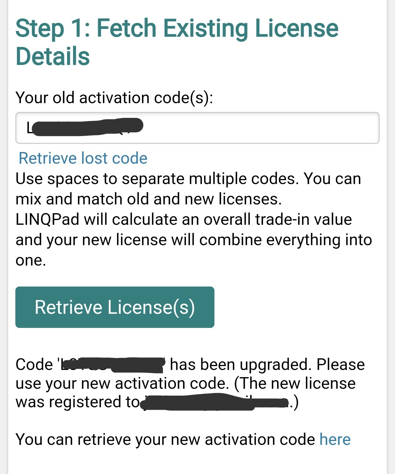 For my curiosity, I tried to upgrade the old code again, which the system detected it was already upgraded. But doesn't that prevent me from getting the upgrade discount if ever I decided to upgrade the other user from my previously 2-user license?