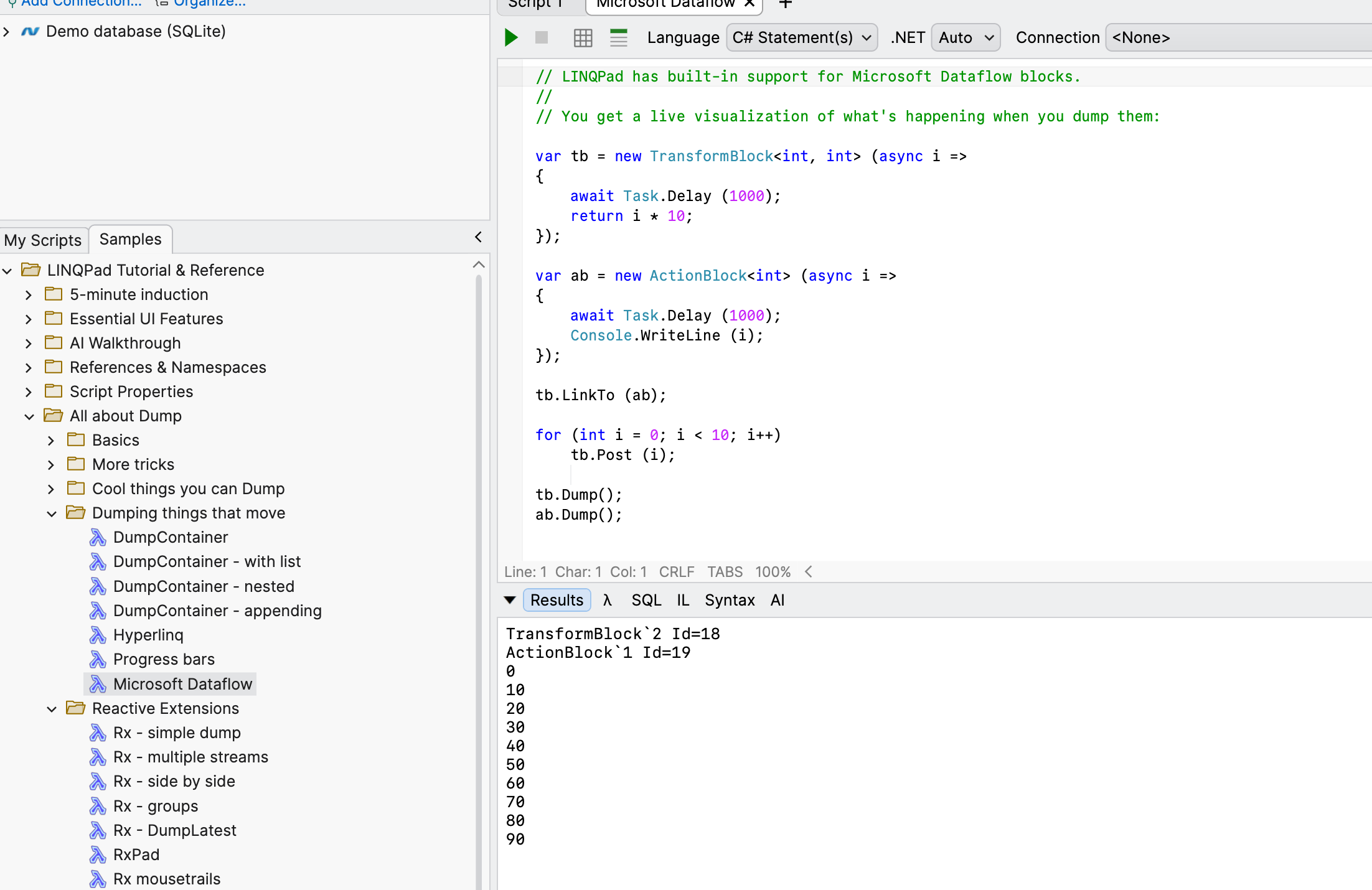 It looks like Avalonia LinqPad doesn't support dataflow visualization. Is this a known issue or a bug on mine?