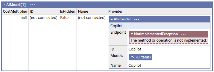 var copilotProvider = AIProvider.All.FirstOrDefault(p => p.ID == "Copilot"); copilotProvider.Models.Dump();