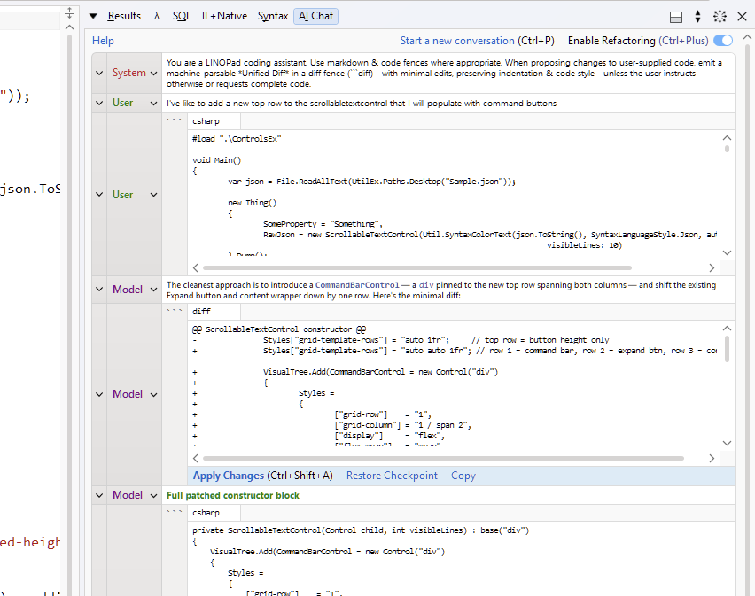 I think the built-in AI feature in LINQPad 8 is quite amazing. I use it very often, paired with GPT-4o, the effect is very good!